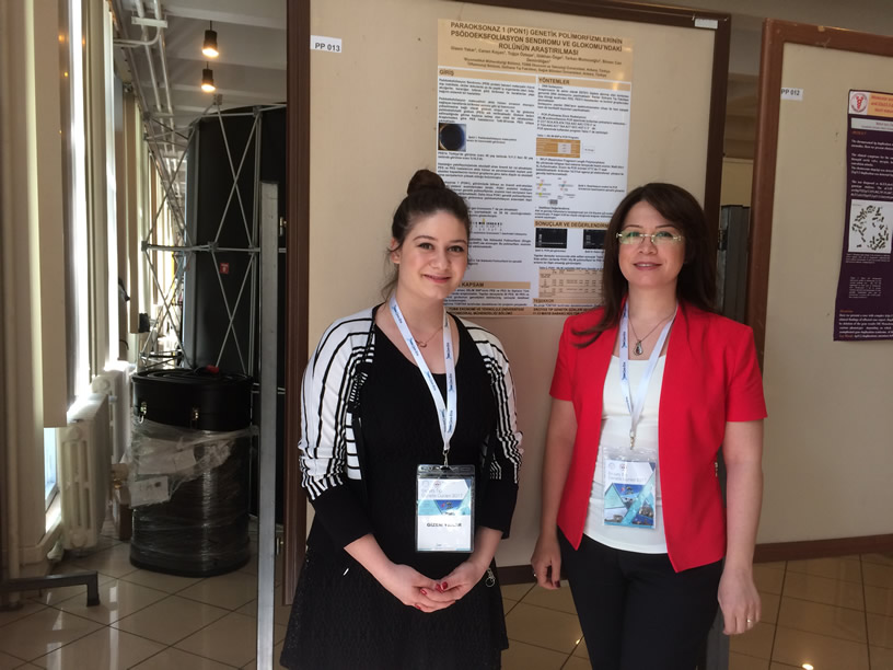 TOBB-ETÜ Biyomedikal Mühendisliği Bölümü öğrencilerinden Ezgi Göksoy ve Gizem Yakar ile birlikte, Erciyes Tıp Genetik Günleri 2017'ye katıldık. Ezgi ve Gizem, PON1 genindeki polimorfizmler ile psödoeksfoliasyon sendromu/glokomu arasındaki ilişkiye dair çalışma sonuçlarını sundular. (Kayseri- Mayıs 2017)